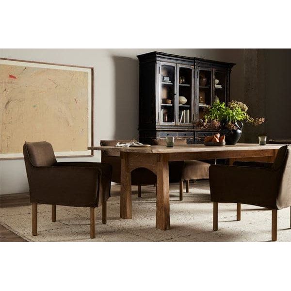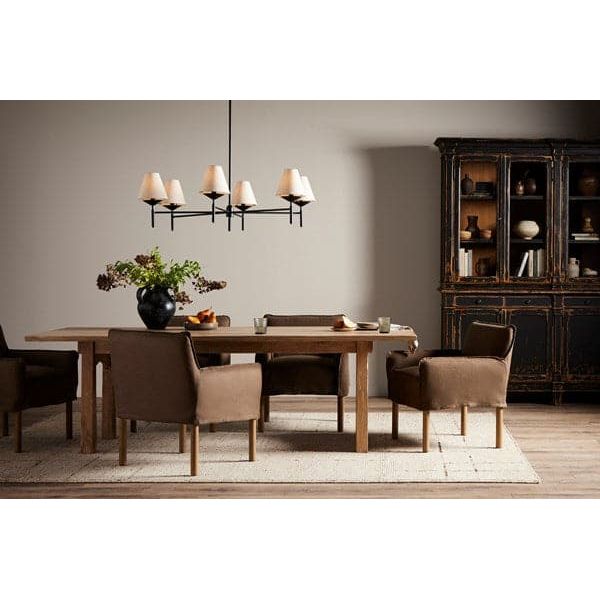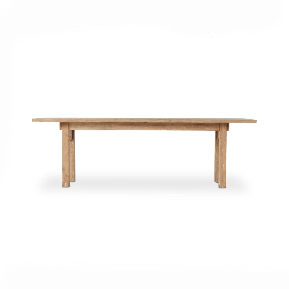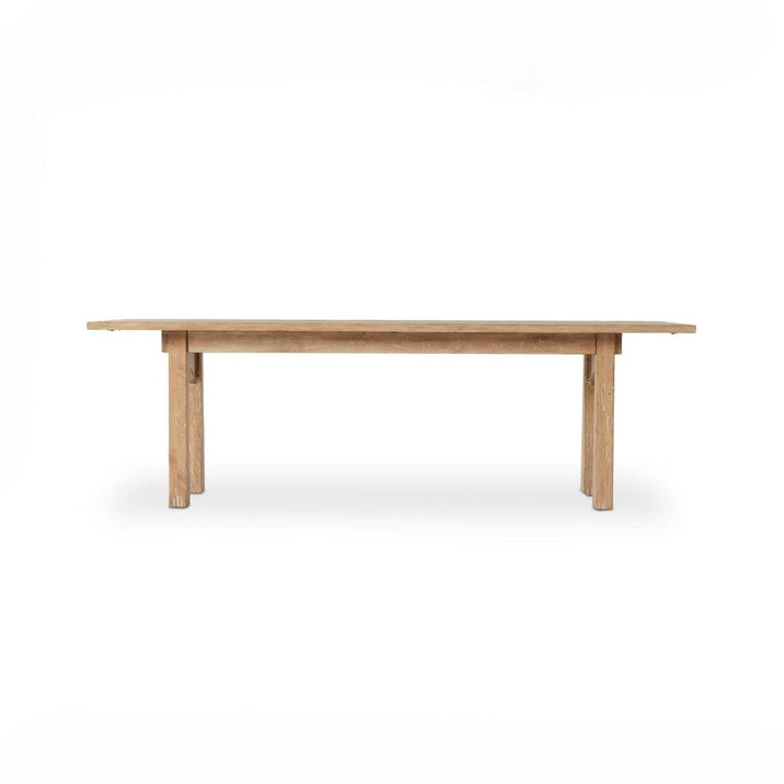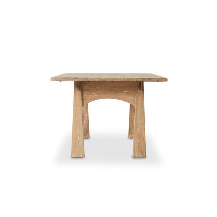Made from light-finished pine, tapered legs and thick stretchers speak to the Swedish inspiration behind this 10-person dining table. Arched base cutouts soften a clean rectangular tabletop.