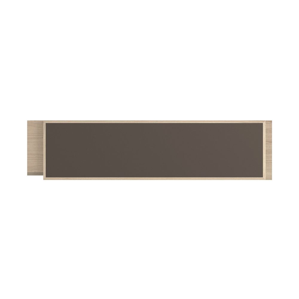 - Three drawers with fronts in frosted Smoked Bronze glass with touch latch undermount guides.