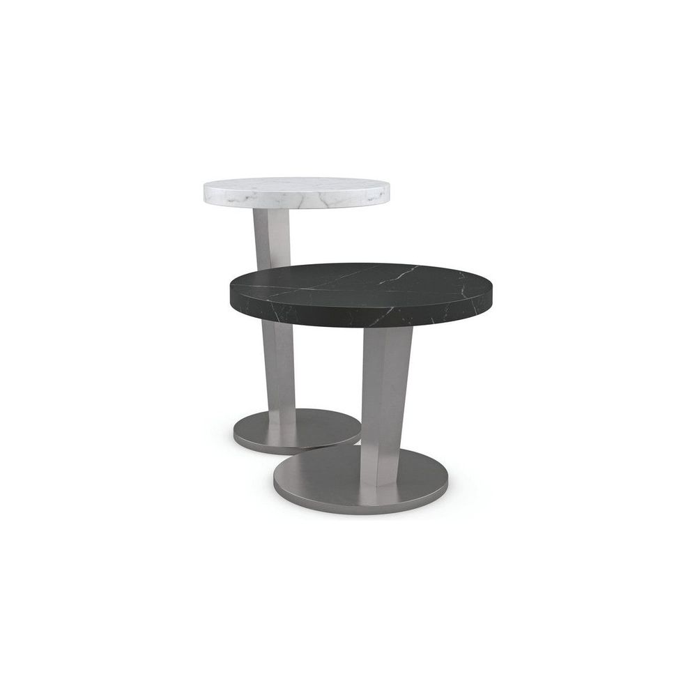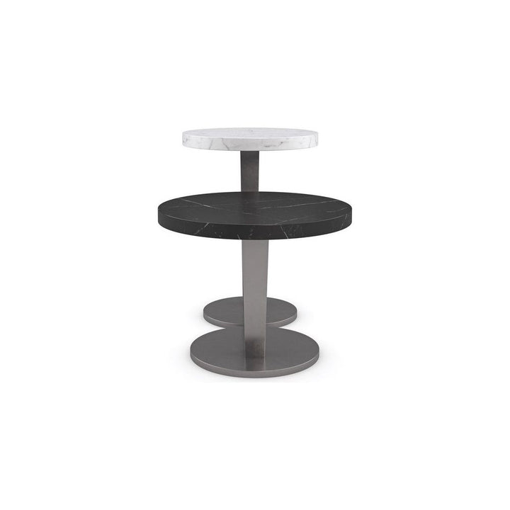 There when you need it, this easy-to-move accent table adds depth in a mix of metal and stone. A sleek metal base in Smoked Stainless Steel paint is topped by white Carrara marble for an elevated touch. Style solo, or pair with our La Moda short spot table to create a multidimensional surface for drinks and display.