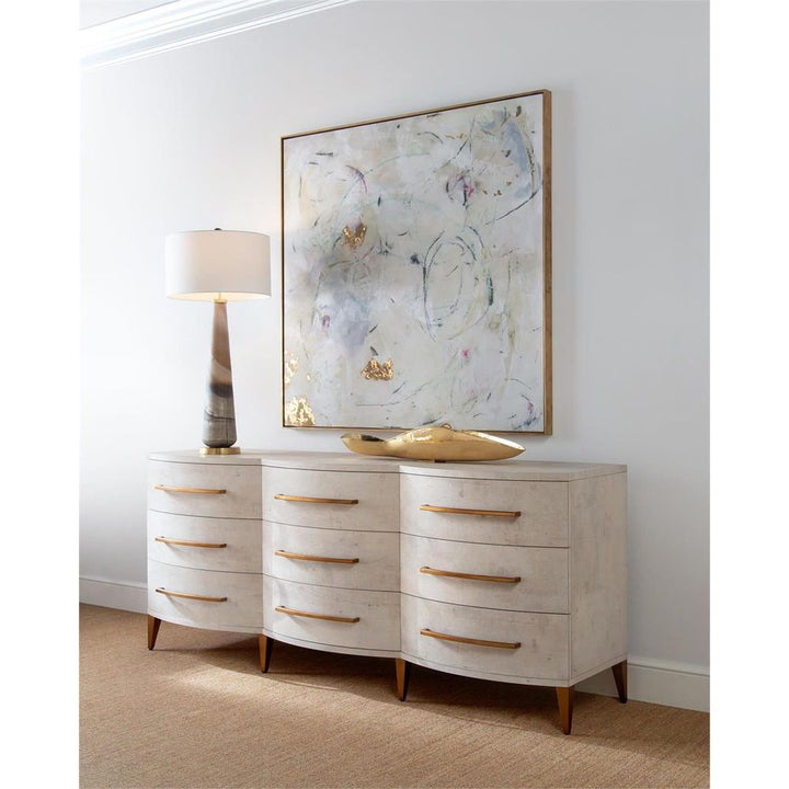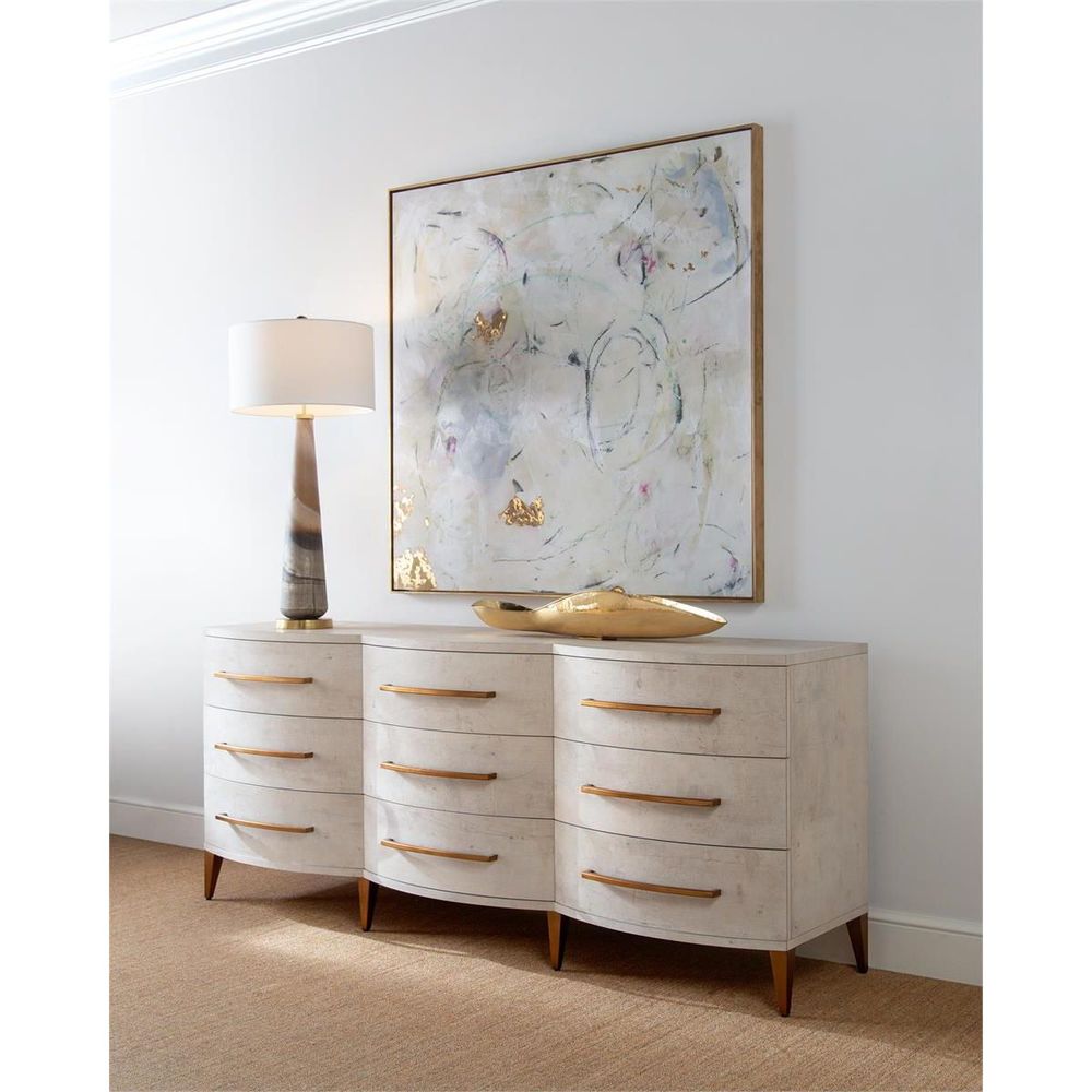 In a matte glass finish, the creams and caramels seem to be unfurling around the glass in this outstanding buffet lamp.