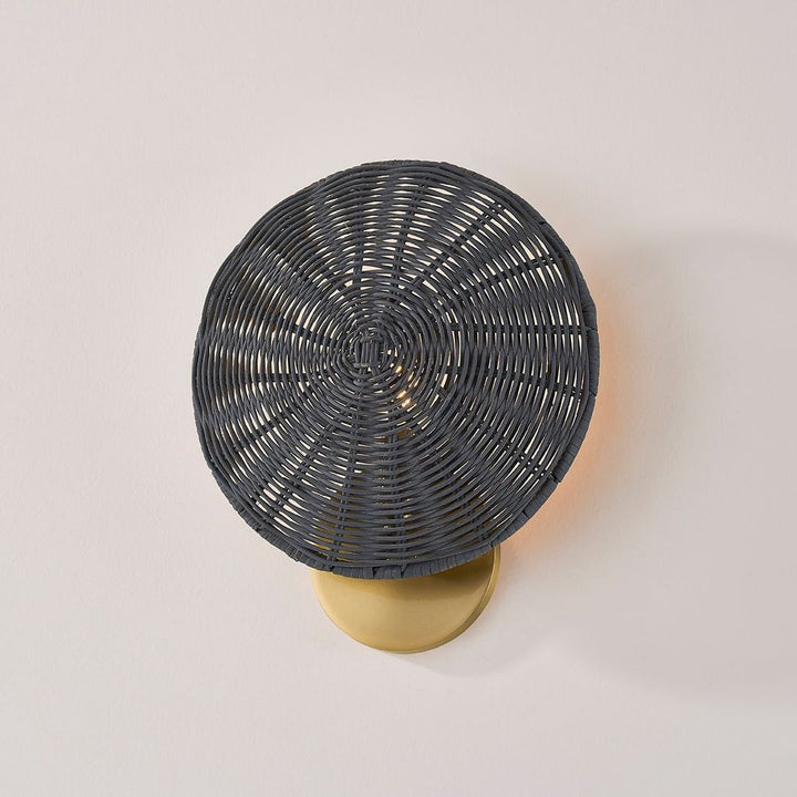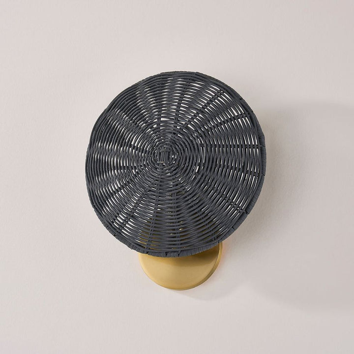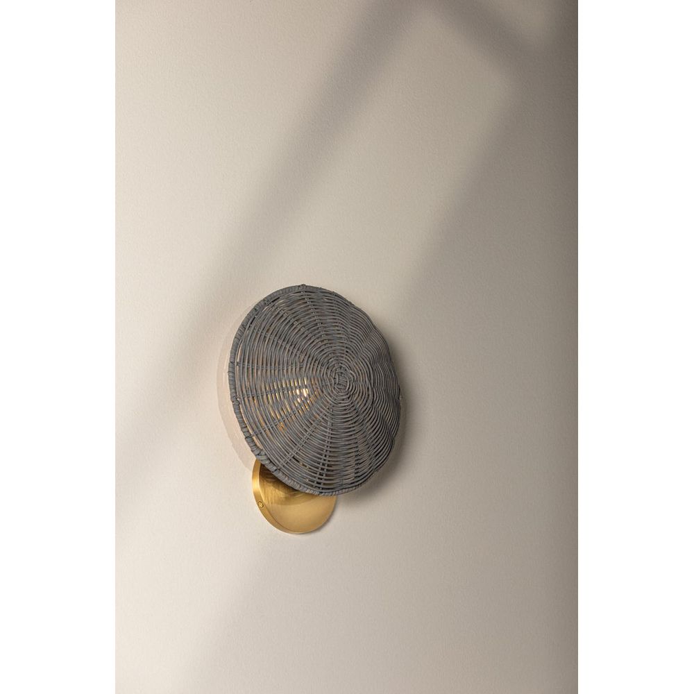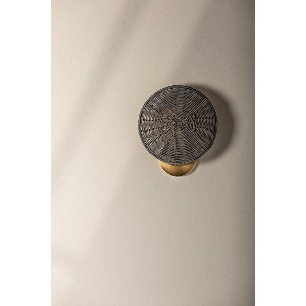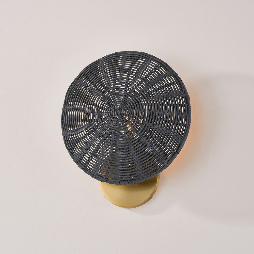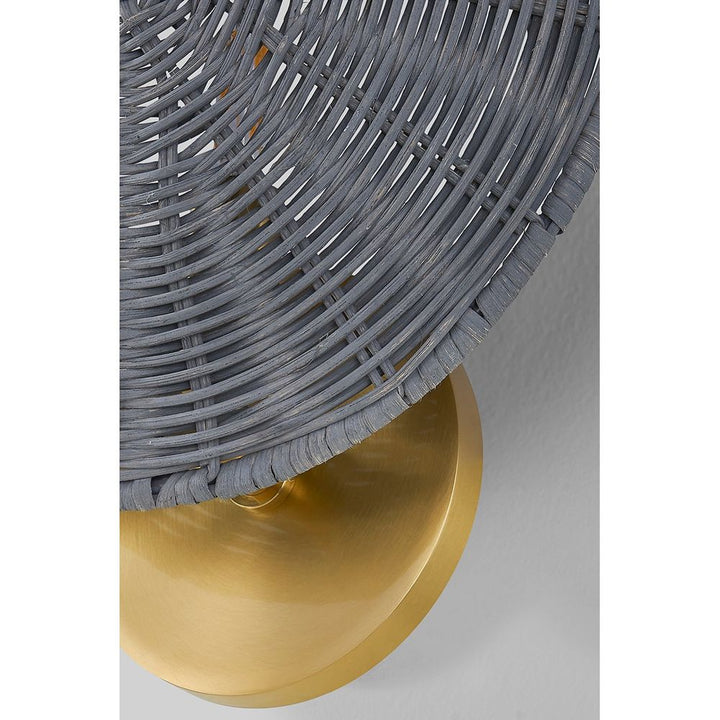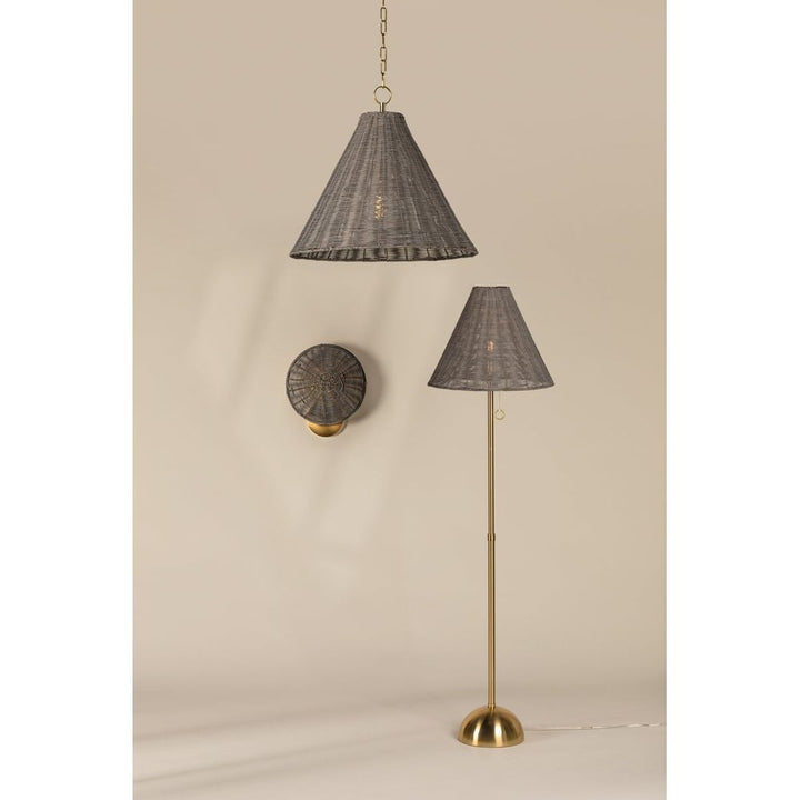 Combining the beauty of natural wicker and polished Aged Brass, this coastal-inspired fixture exudes understated elegance. When illuminated, the golden-hued brass gleams through the gray wicker, creating a warm and earthy glow. Available as a sconce, pendant, or floor lamp. Part of THELIFESTYLEDCO collection.