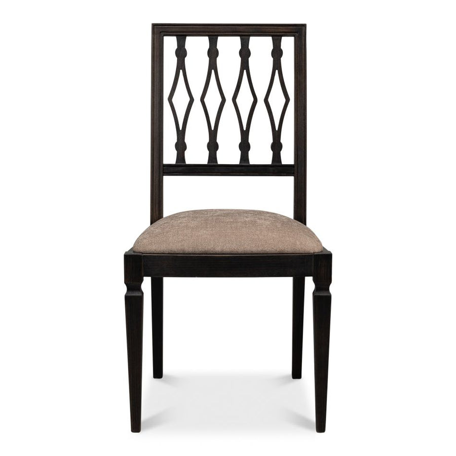 Description: The square back of this chair is detailed with an elongated diamond pattern making it quite elegant.