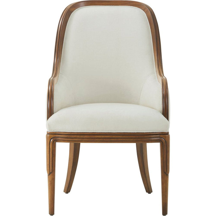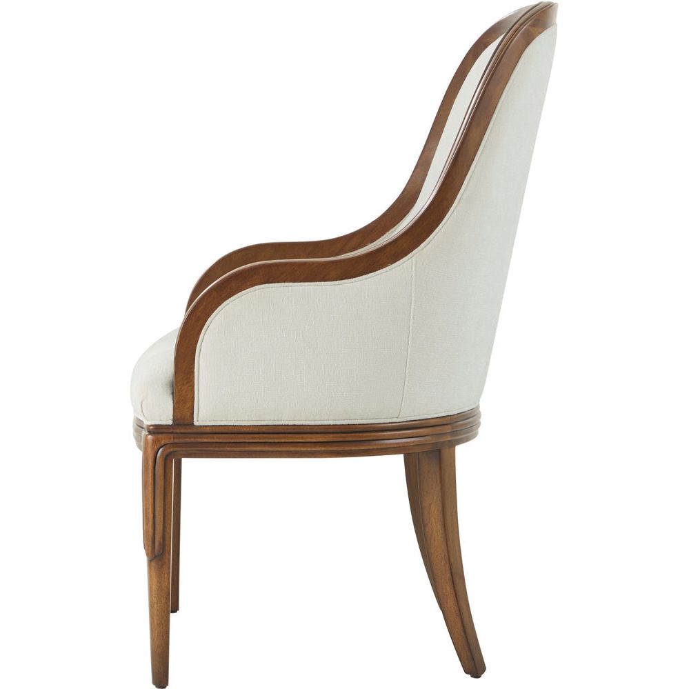 The Dorchester Armchair recalls the French Art Origins period through swooping curves and visually pleasing forms. Finished in Mayfair and figured walnut.