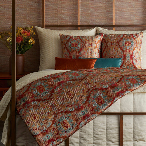 Inspired by acup from Ancient Egyptgiven to the Pharoah as part of a dowry, hence its name in our line, Dowry. With this cup, two things immediately stood out - the color palette and the ogee shape of the cup itself. To highlight those two parts of the design, we began with a freehand ogee layout, then filled in the background with that gorgeous terra cotta color, as well as contrasting and complementary tones. The result is a stunning embroidered design, rich in both history and colors.