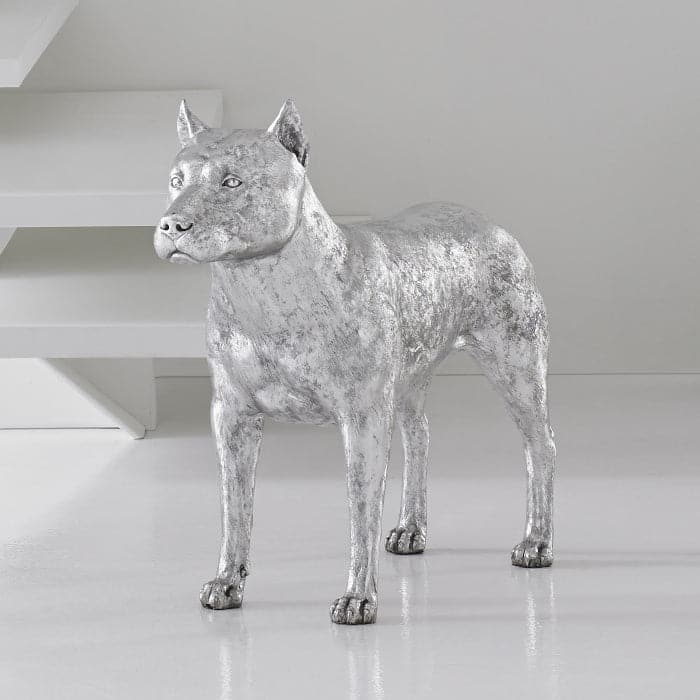 Cast in artisan-grade resin and hand finished in silver leaf, this realistic canine make a glamorous pet.