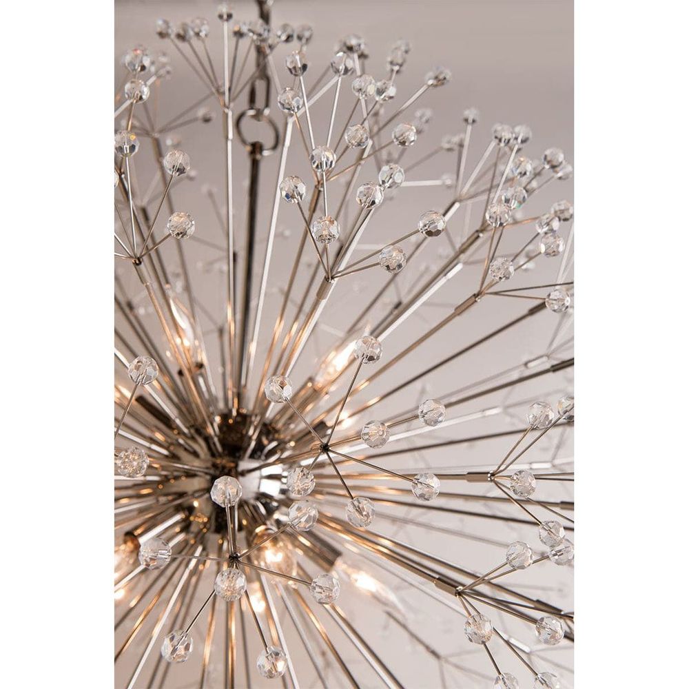 Densely populated with the highest-quality beveled crystal beads available, Dunkirk explodes on the scene. Candelabra bulbs from deep within illuminate the crystal-laden branches from behind for an effect that is both dazzling and mesmerizing. With a firework feel, Dunkirk is sure to become the centerpiece of any space, destined to cause oohs and ahhs. Available as a flush mount in two sizes and a chandelier in three, these fixtures can be used alone or together in scale for a breathtaking effect. Choose from Aged Brass or Polished Nickel.