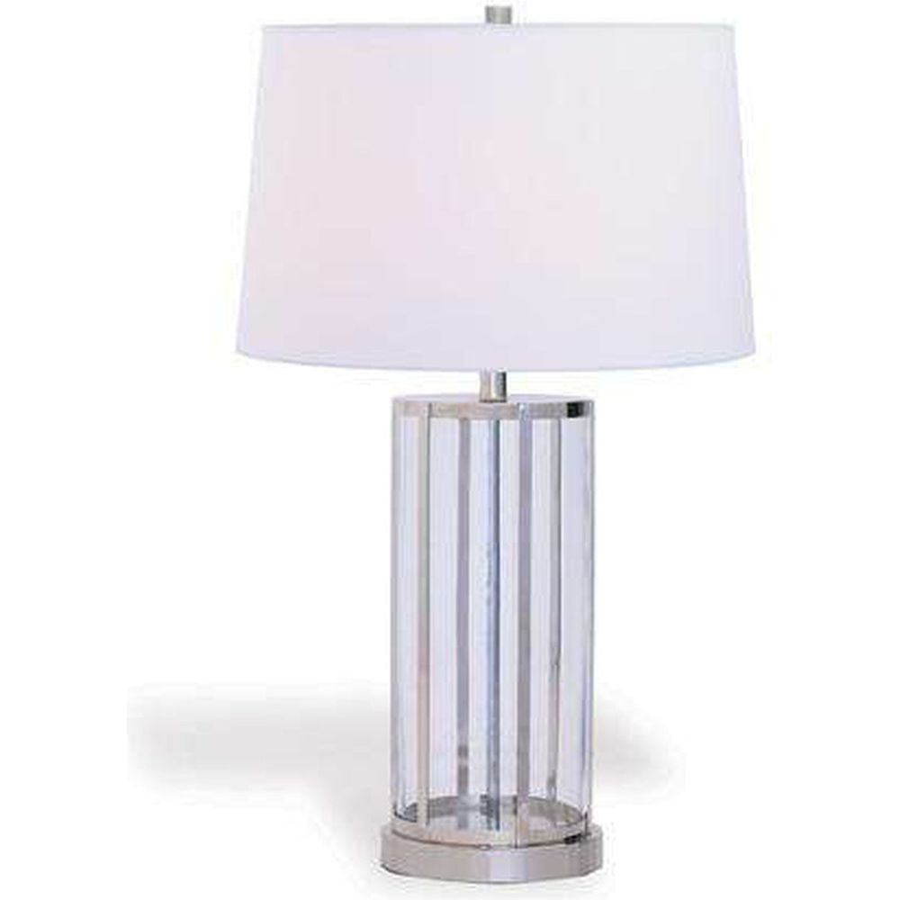 - Simple clean lines of polished nickel and clear glass make the Edgewater lamp a modern basic. Polished nickel cylinder finial. 3-way switch. 150 watt max
