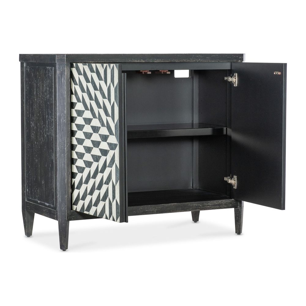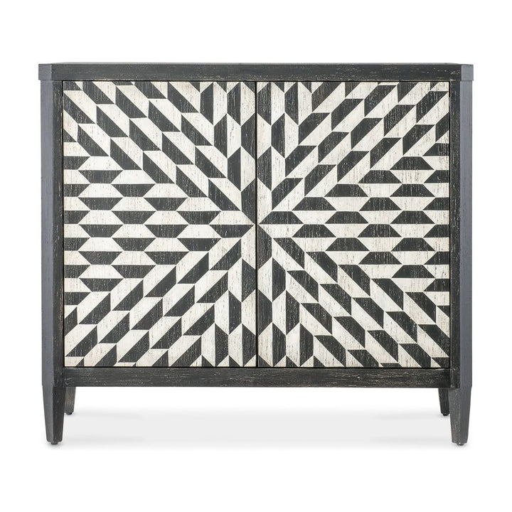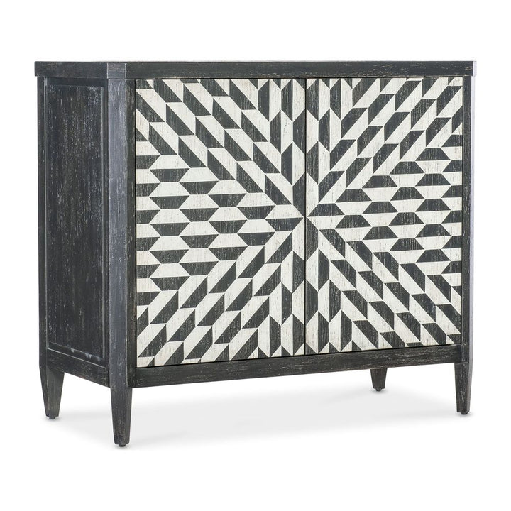 Description: The Lancaster Hall Chest offers the classic and always-stylish black & white combination and timeless painted starburst pattern on the door fronts. Crafted of Maple Veneers, the two doors have soft-close hinges and magnetic door catches with one adjustable shelf behind the doors.
