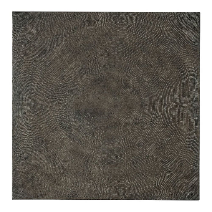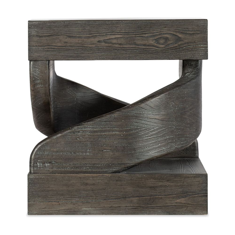 Description: Angular and architectural, the 22-inch-square Twister Table is crafted of Pine Veneers and resin with a distressed dark finish and twist base.