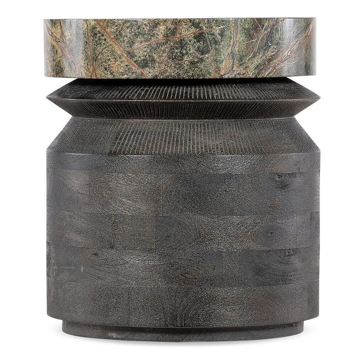 Description: With a pottery-like feel, the Valor Accent Table is crafted of Mango Solids in a black finish with a Green Forest Marble top. At 17 inches round, it has a convenient, compact footprint.