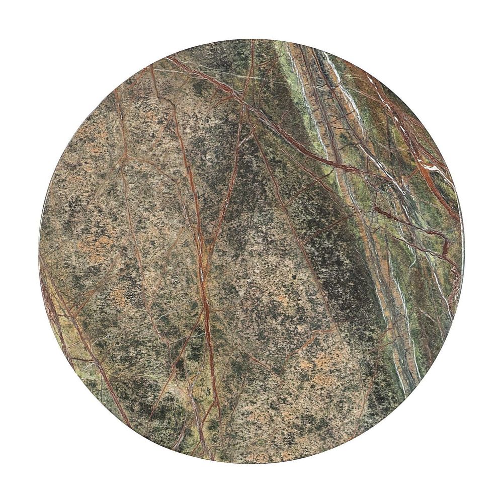 Features: Round shape; Convenient, compact footprint; Green Forest marble top