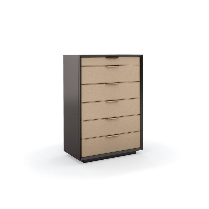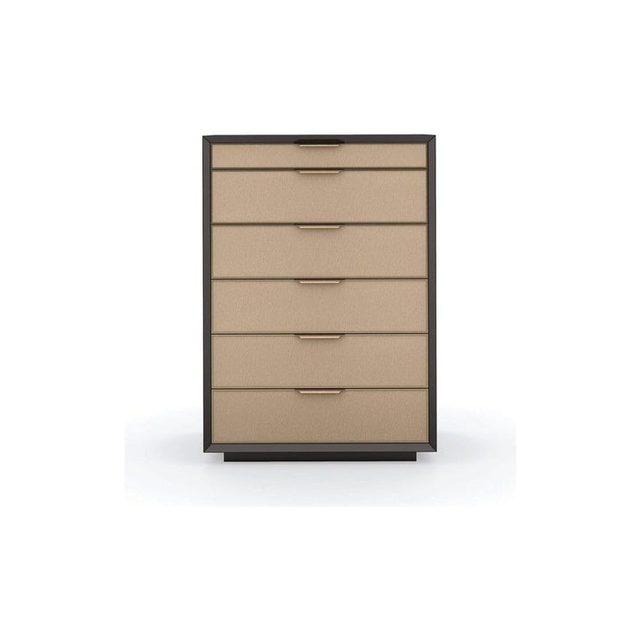 Features: Case finished in Dark Chocolate.Metal trim in Champagne Gold.Six drawers with vinyl fronts and undermount soft close guides.Top drawer with felt lined bottom.Interior in Dark Chocolate.Plinth base in Dark Chocolate.
