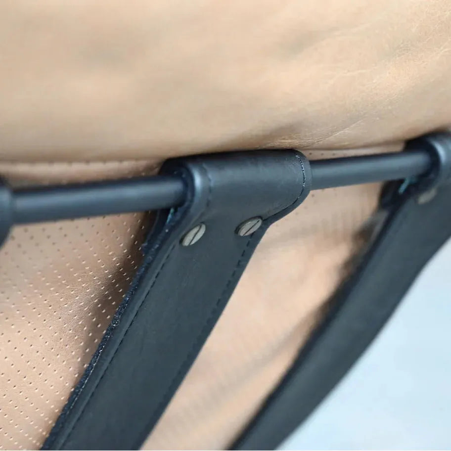 The vintage leather Ericsson Lounge Chair is crafted with meticulous attention to detail, it showcases a perfect blend of classic design and modern aesthetics. Available in both black and tan leather options, the chair's rich hues add a touch of sophistication to any space. The minimal steel frame with a matte black powder coat not only provides durability but also compliments the overall sleekness of the design. Whether placed in a cozy corner of a living room or as a focal point in an office, the Ericsson Lounge Chair effortlessly combines style and functionality.