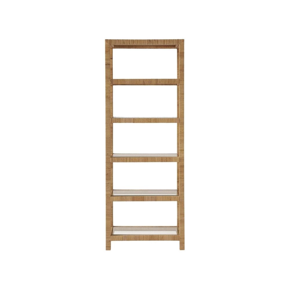 With five glass display shelves designed within a wrapped rattan frame, the Long Key Etagere offers both a gentle repose as well as a convenient space for books, small trinkets, and other home accessories.