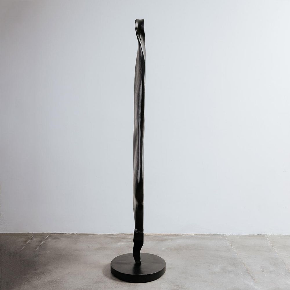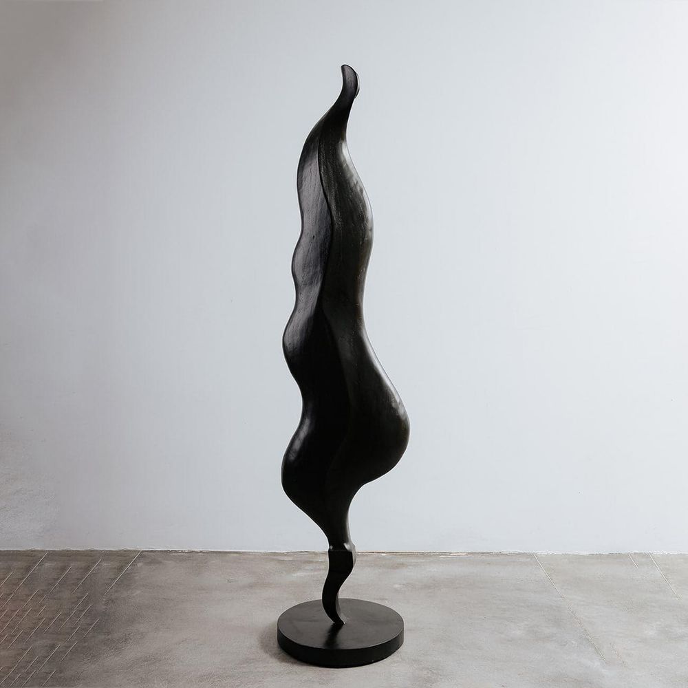 Crafted from teak with a black finish this sculpture will look great in modern and contemporary style space. The flame-like design has a fluid look one wouldn't expect to come from wood.