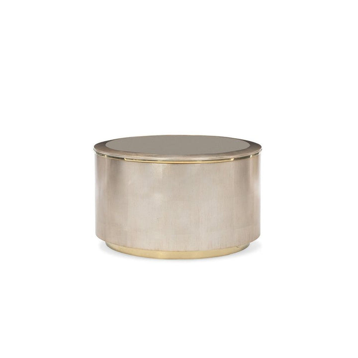 Bold and beautifully balanced, this round cocktail table artfully mixes cool silver leaf tones with the warmth of gold. Features a reflective bronze mirror top to keep the look clean. Use it to center a room, or bunch together with our All Around cocktail table to create a memorable seating area.