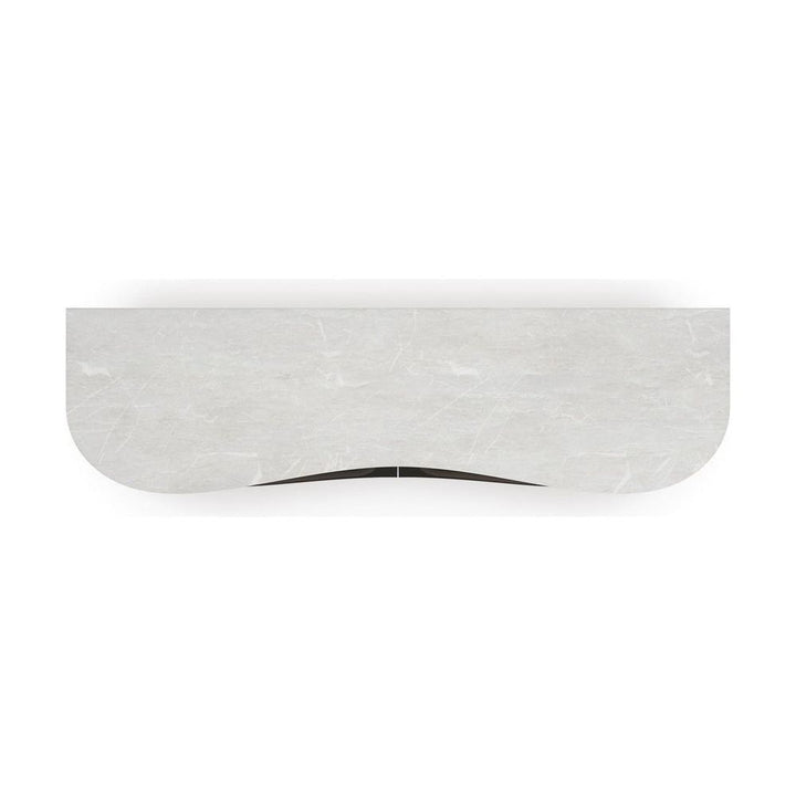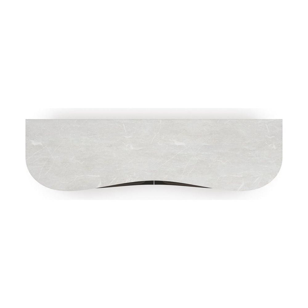 Features: White Rhino marble top.End panels and drawer fronts in Moonstone.Six drawers in with soft close undermount guides.Plinth base in Seal Skin PaintDrawer interior in UV Linen.Hardware in Deep Bronze.
