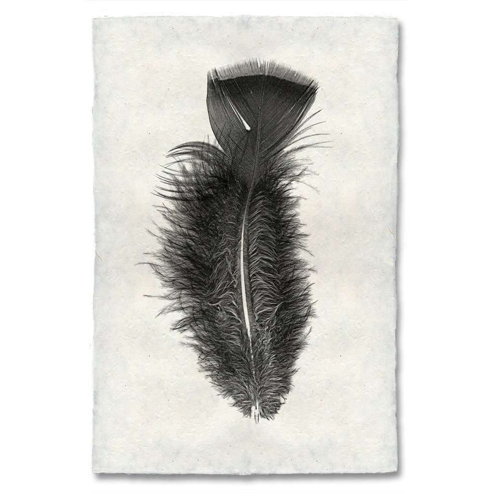 Simultaneously subtle and striking, this feather print adds simplicity and beauty to any room it is placed in. Classic black and white imagery allows this feather print to cohesively blend in with any decor style. This handmade paper gives a unique "worn" look which seamlessly merges both traditional and modern design.