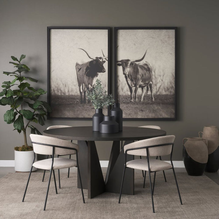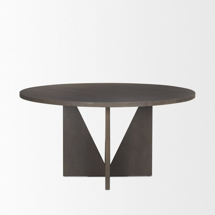 Description: Finn Dining Table features a round tapletop that rests on three angled legs that come together to form a beautiful, slender silhouette.
