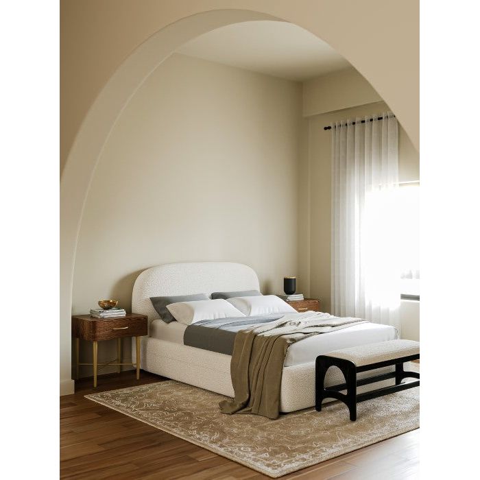 Description: The Flora Nightstand is a study in Modern Deco. Plated, subtly tapered champagne brass steel legs, support a solid Oak case construction with a softly contoured drawer front.