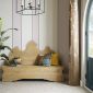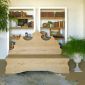 Description: A distinctive storage bench styled in the fashion of an Italian Baroque cassone (marriage chest) from the 18th century. A high patterned wood back resides above a wood seat that lifts to expose a storage compartment.