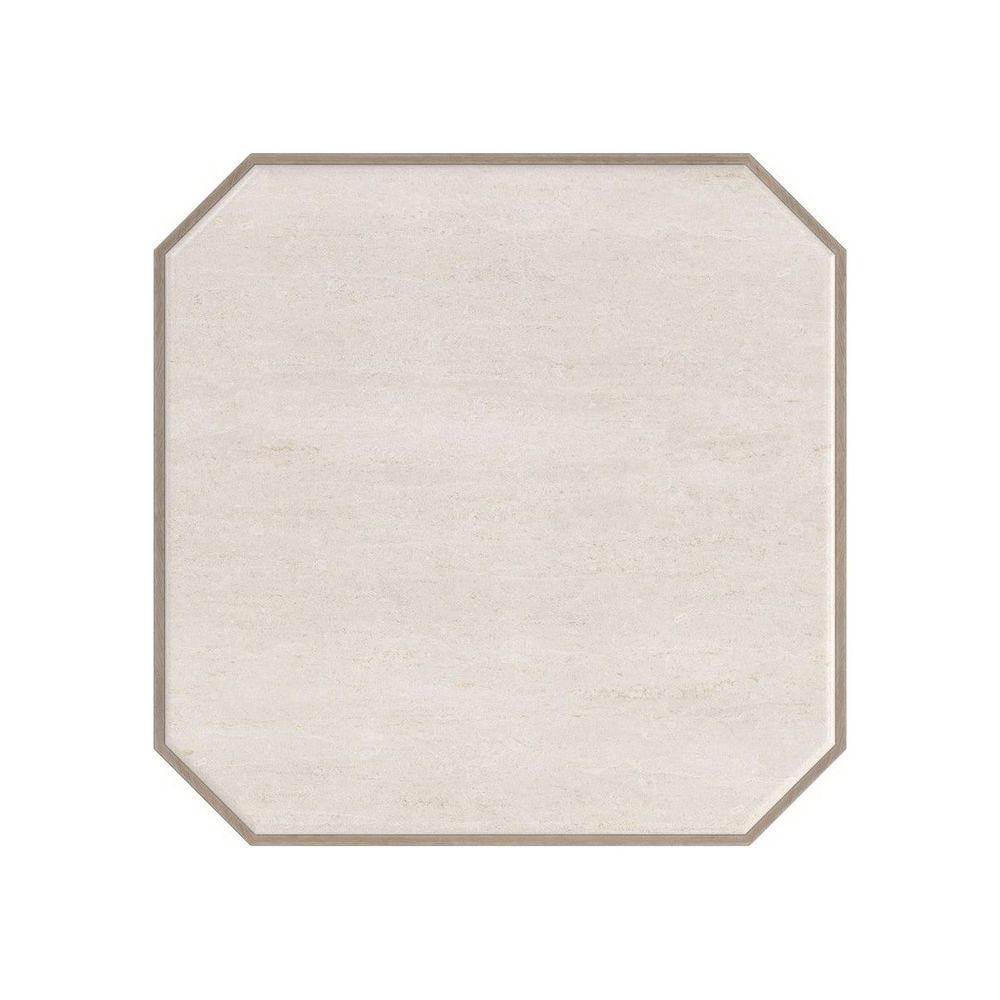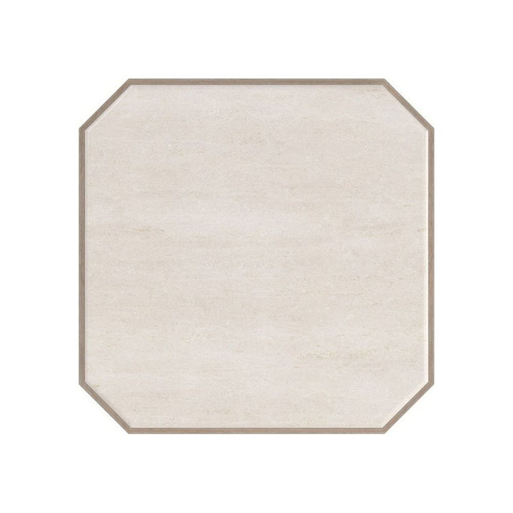 Features: Creme Travertine stone top.Metal legs in Bushed Gold, Brushed Stainless and Deep Bronze.Smoked Bronze glass shelf.Bottom shelf in Dry Martini finish.Plinth base finished in Dry Martini paint.