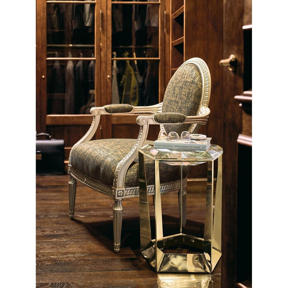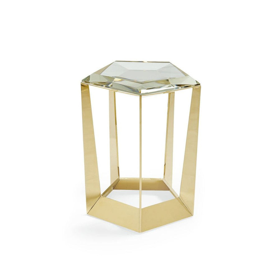 The Gem Side takes its inspiration from your finest diamond ring. The gleaming Majestic Gold legs emulate a ring's elegantly slender prongs. With its thick beveled crystal top, cut in the shape of a gem, it is the perfect accessory to add sparkle in any room.