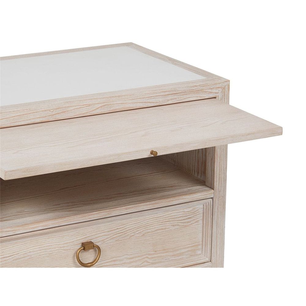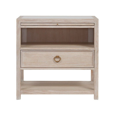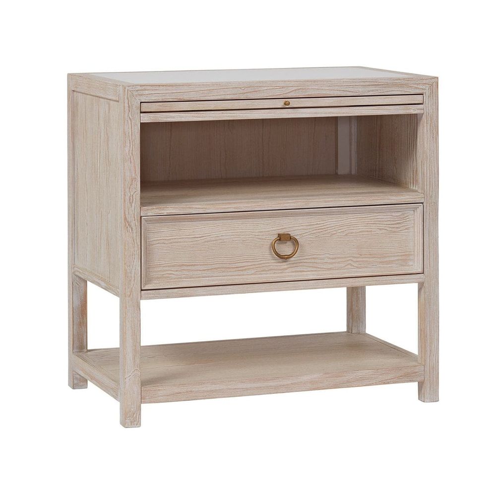 The perfect bedside companion, the Getaway Drawer Nightstand marries the best of function and coastal style with open-air storage, a spacious drawer, smooth stone inset top, pull-out shelf and gold ring pull hardware