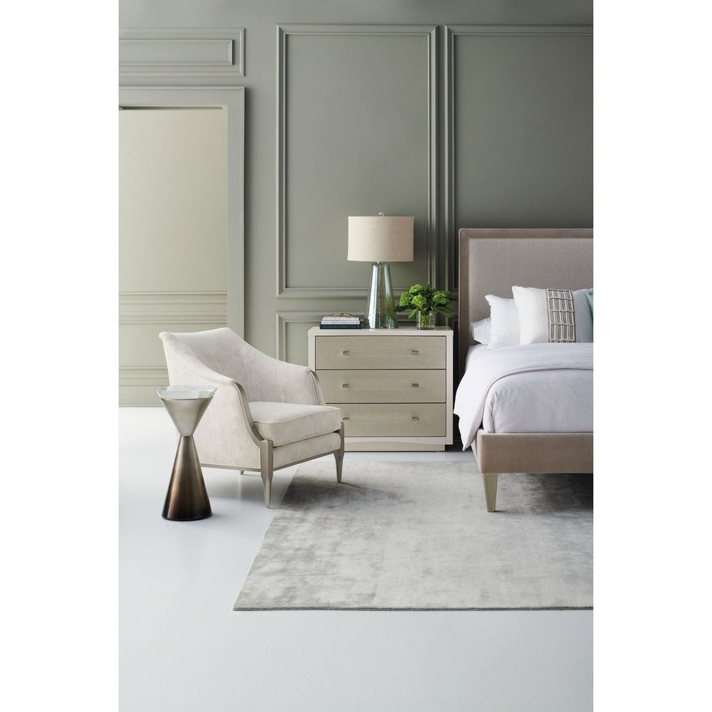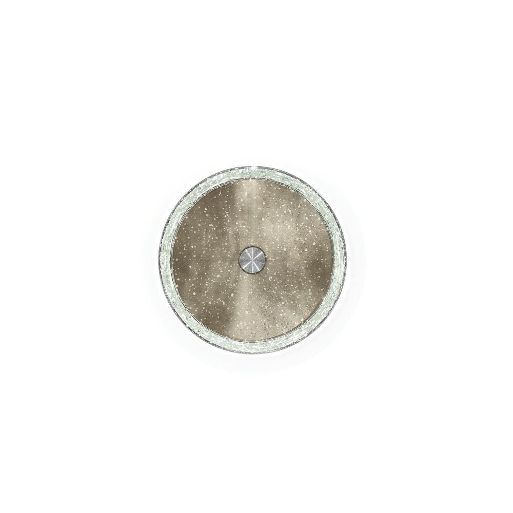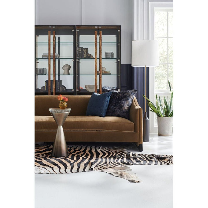 Bold and bubbly, this artful accent table delights the eye with its alluring design. A substantial, bevel-cut top in cast bubble glass adds sparkle to a reimagined, hourglass-shaped base, finished in a mix of shimmering silver leaf finishes. Captivating in form and function, it layers in light and a cool metallic, while offering the perfect place for a chilled cocktail and your favorite spy novel.