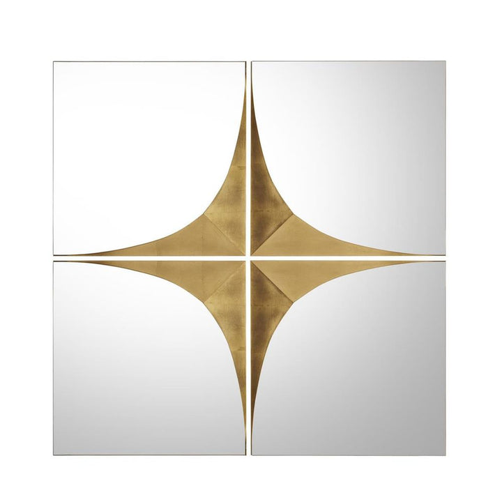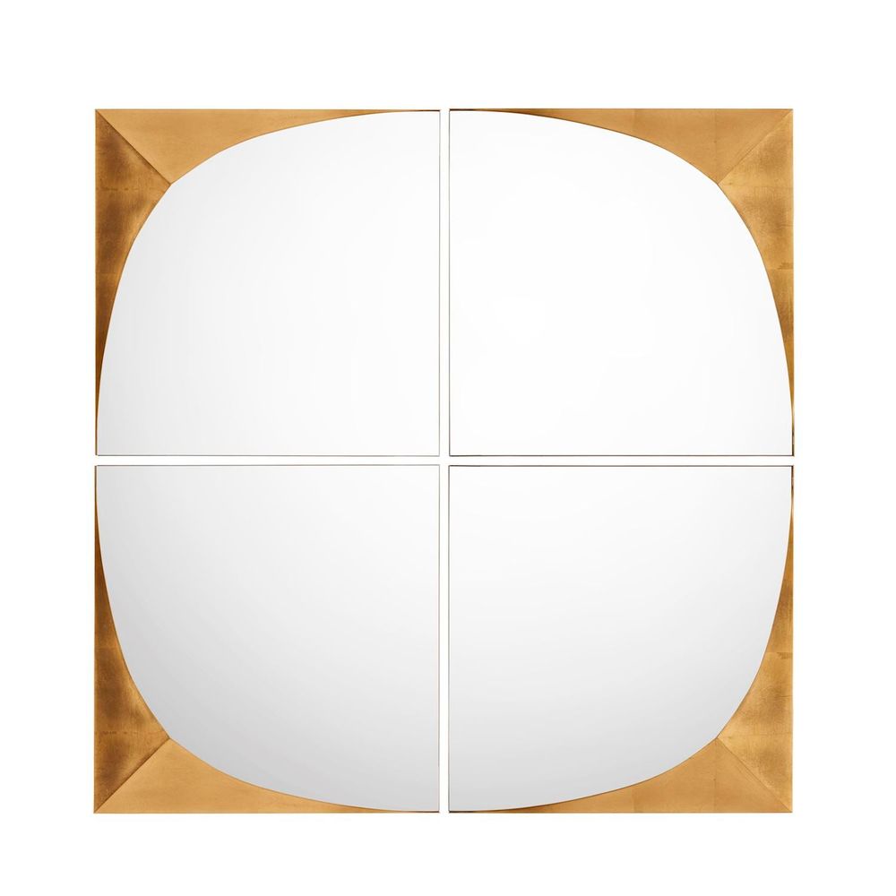 The Contour Mirrors are four stunning wall panels that feature a tasteful, geometric silhouette with lavish tones. The frame showcases a Golden Coast finish and overlaps each of the four glass panels, creating rounded edges at the corners for a unique look. Each panel is affixed with French cleats and can hang in any orientation.