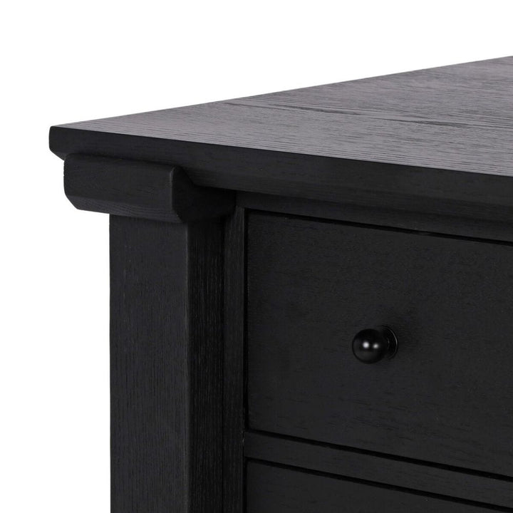 - Finish: Tan Oak Veneer, Black Iron