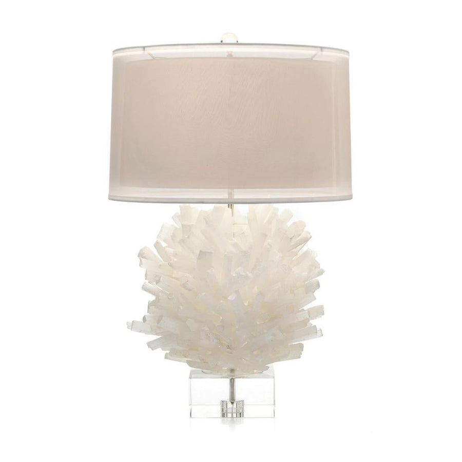 A massive ball of selenite creates an explosion of translucent spires. This beautiful piece is supported by a lead-free crystal base and features Polished Nickel hardware.