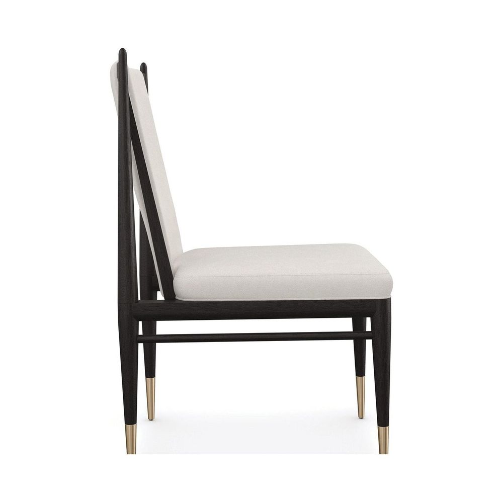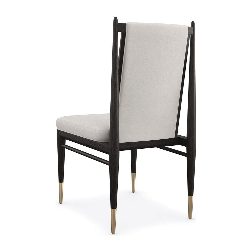 Features: Frame finished in Cinder.Fully upholstered seat, inside front and outside back.Metal ferrules in Lucent Bronze.Chair packaged and sold 1 per carton.