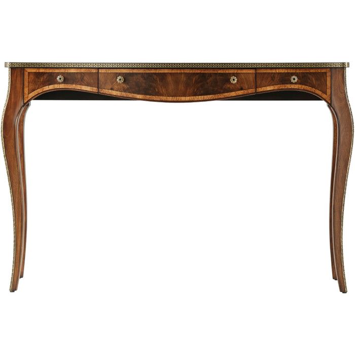 Seen here in our elegant Patrician finish, the larger scale Harper Console Table combines classic elements of Etimoe Crotch, Karelian Burl, and makore veneers with beautiful brass inlays.Theodore Alexander is shaped by English Heritage handcrafts furniture and accessories for your home with uncompromising quality. They also believe that the person who owns a piece of Theodore Alexander Furniture should take comfort in knowing the item can be viewed from any side and they have made the piece by using a time-honored, handcrafted method that is the true mark of high quality. Every piece of Theodore Alexander has a story just waiting to be shared.