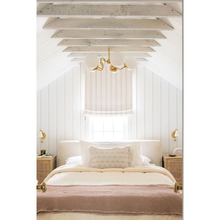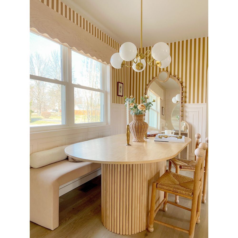 Art nouveau meets midcentury Italian, the Havana wall sconce and chandelier indulge in of-the-moment, whimsical design. Available in aged brass, old bronze, and polished nickel, Havana is engaged in shape play and features a wavy arm and glossy opal globe shade. Available in small and large chandelier.