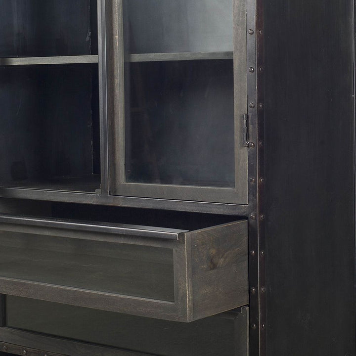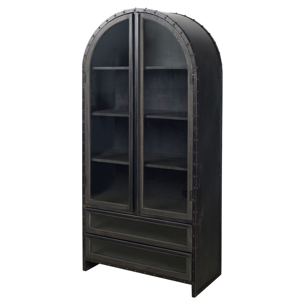 Description: Haverton II is an antique style, full-size metal cabinet with a curved top and wooden accents.