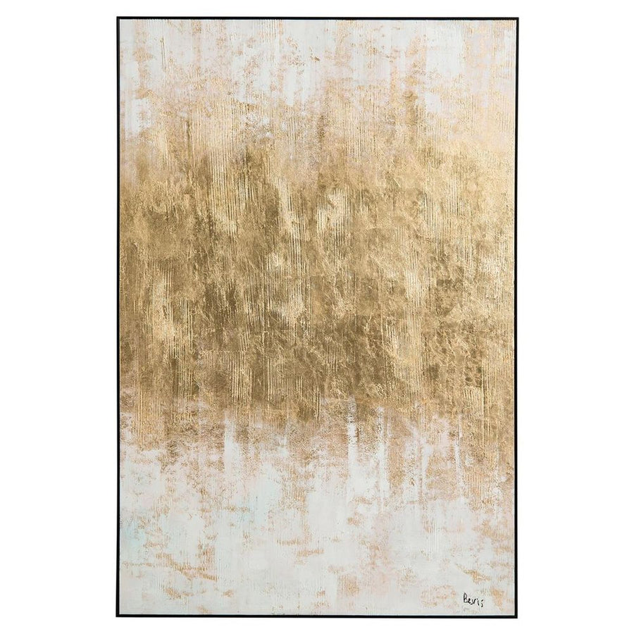 Glorious golden tones shower soft greys in this soothing piece by artist Bevis. The original oil painting is highlighted by a black wood molding.