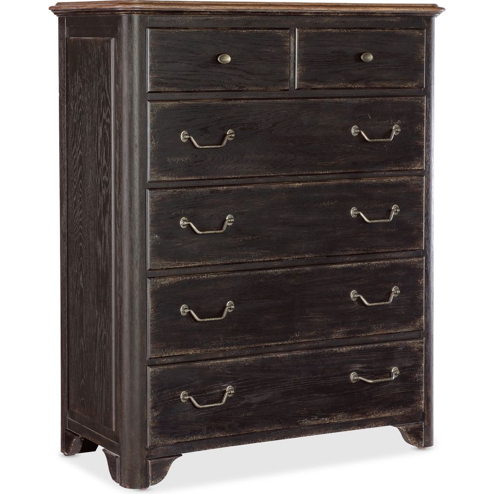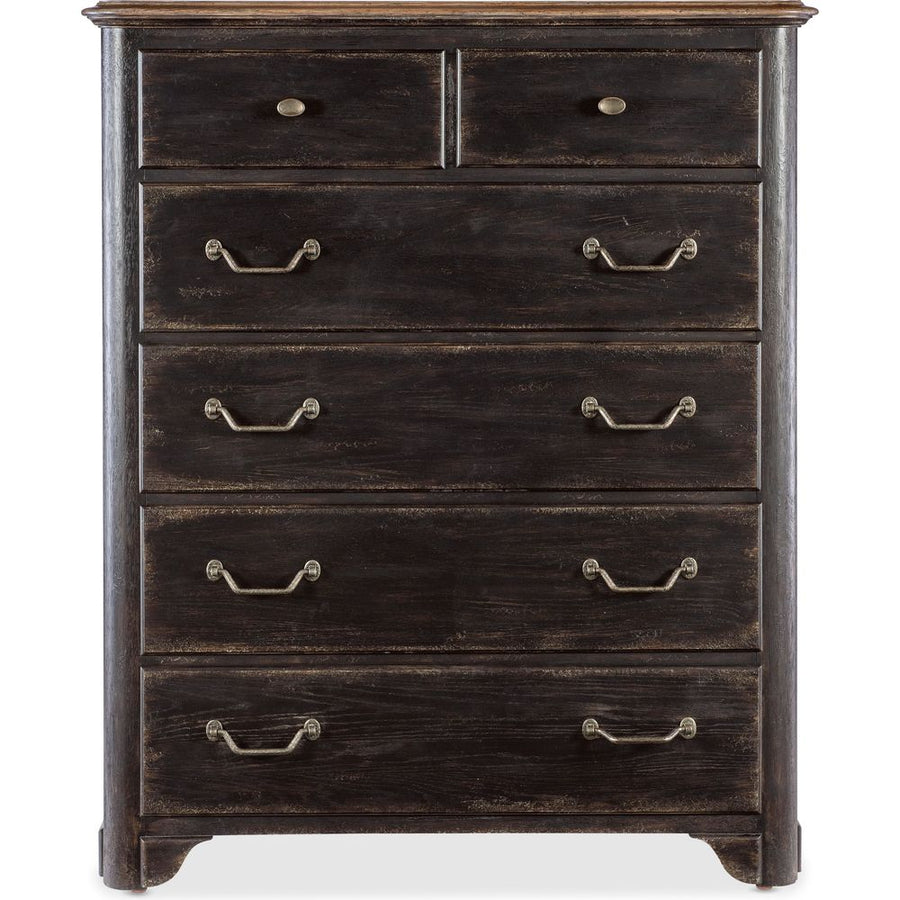Description: In a two-tone finish with the deep, dark Molasses on the case and the warm Honey on the top and on the drawer interiors, the Heritage Dresser is a classic, charming design with a nostalgic flair. The six self-closing drawers have top drawers with black removable felt liner and a bottom drawer that is cedar-lined. Metal alloy pulls in an antique bronze finish.