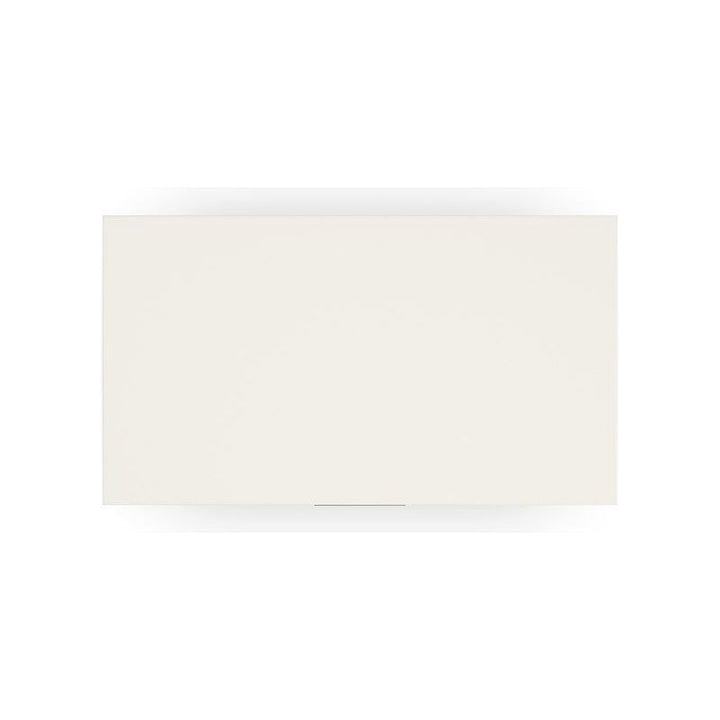 Features: Top and ends finished in Almond Milk.Metal trim in Brushed Stainless.Three drawers with fronts wrapped in vinyl and soft close undermount guides.Drawer interior in UV Linen.