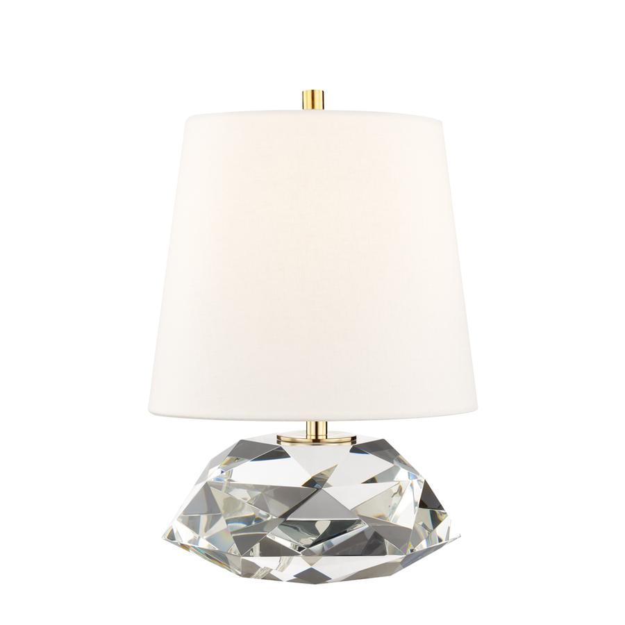A table lamp sometimes adds a visual weight that helps anchor a space at the same time it illuminates it and provides a decorative accent. Henley's dense base of multifaceted crystal has that effect. A perfectly proportioned shade of Belgium linen completes this glamourous addition.