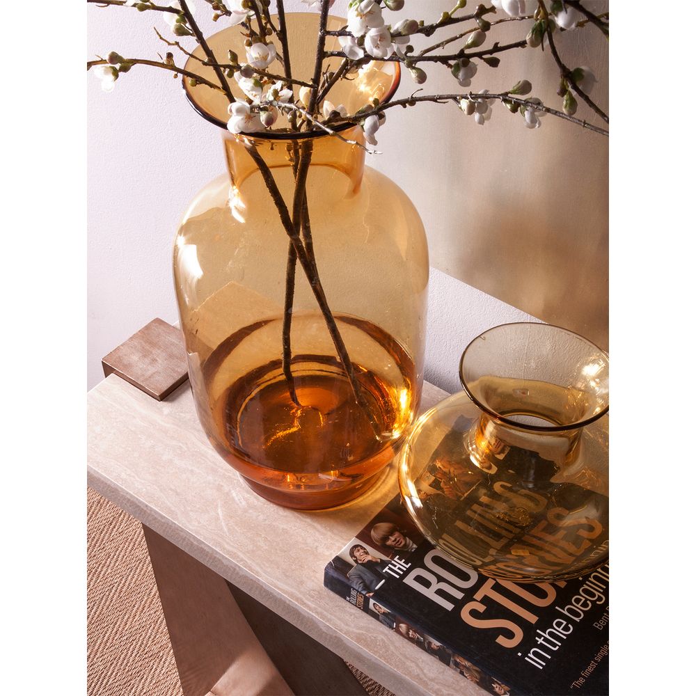 Feature 1: Impresario stuns in its simplicity, with a graceful descending arch supporting the substantial and beautiful Italian silver travertine stone top on a mahogany base in a warm silver leaf finish. Travertine is a product of nature and may vary from piece to piece.