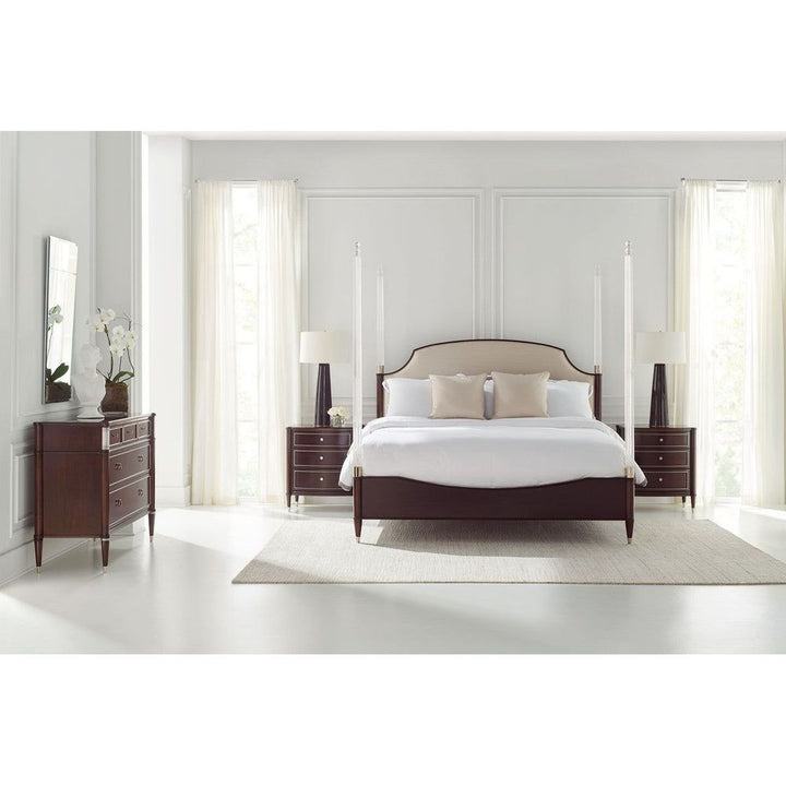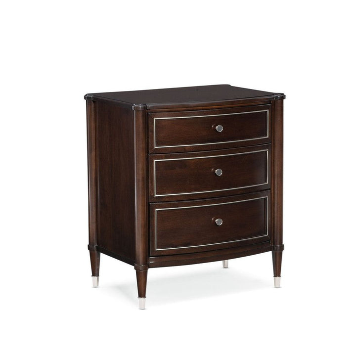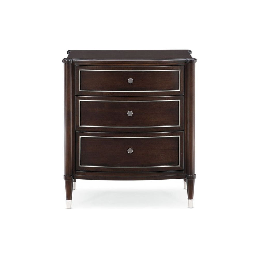 The timeless Mocha Walnut finish and Soft Silver Paint accents of this elegant nightstand are a perfect pairing. Its personality boasts updated traditional heritage enlivened with modern touches. You're sure to love the storage its three drawers provide each fully finished in Soft Silver Paint. And for an extra-special touch, its top drawer features a bottom panel silkscreened in a pattern that's almost too beautiful to cover certain to bring you joy every time it's opened.