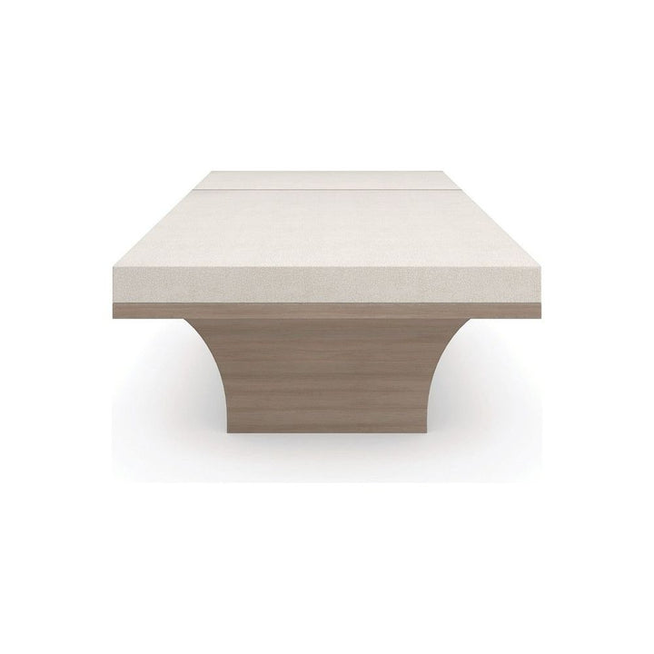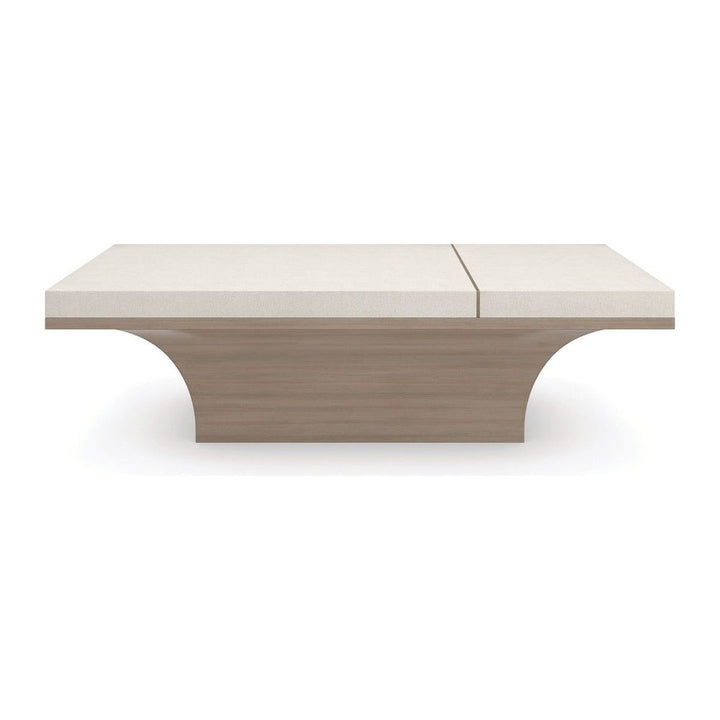 Like a pair of pants precisely tailored to fall just above the shoe, this cocktail table speaks to a delicate tension between texture and material. Features an ample top in an Ivory Craze crackle finish, balanced on a swooping Koto wood base that appears to defy gravity. An asymmetrical beaded spline in Brush Gold lends separation and a luxe finishing touch.