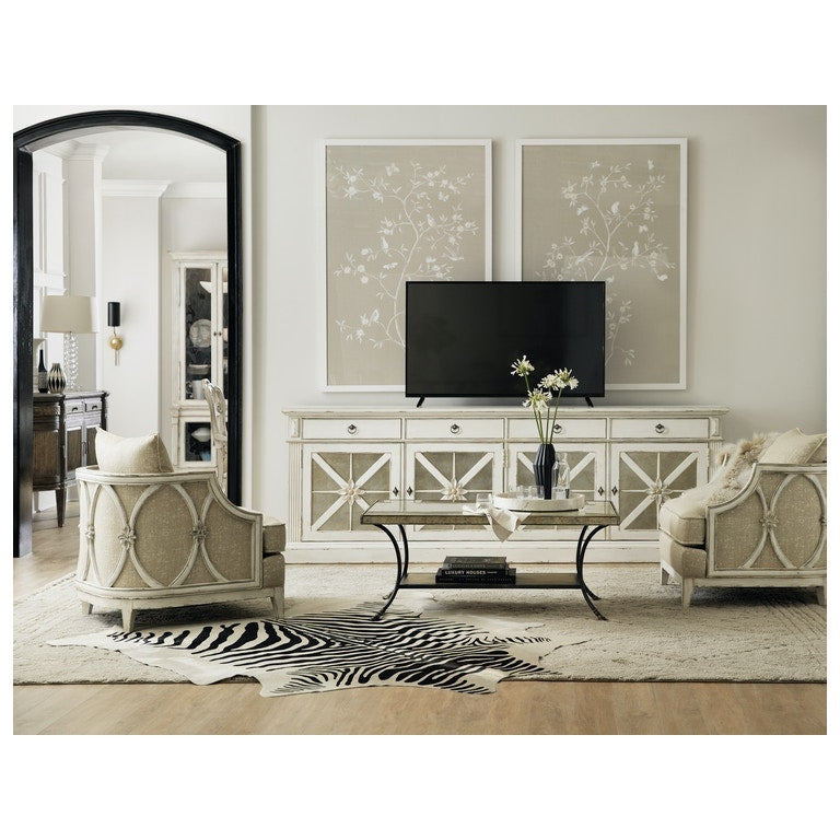 - Finish: Whites/Creams/Beiges, The Chalet finish is a two tone finish combining Latte, a light wood tone and Blanc, a creamy white finish accented with champagne and silver tipping. Distressing includes gouging and worm holes.