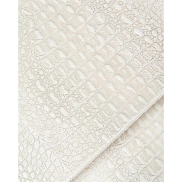 Description: Sitting upon four turned and tapered legs finished in Aztec gold, the tops of this pair of nesting tables are inlaid in crocodile-patterned textured resin and finished in a variegated cream and white.