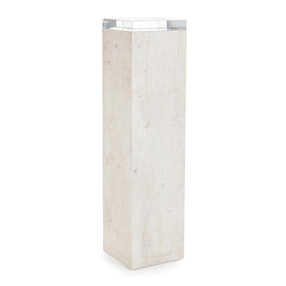 Description: A modern pedestal is finished in tiza gesso and paired with a crystal top.