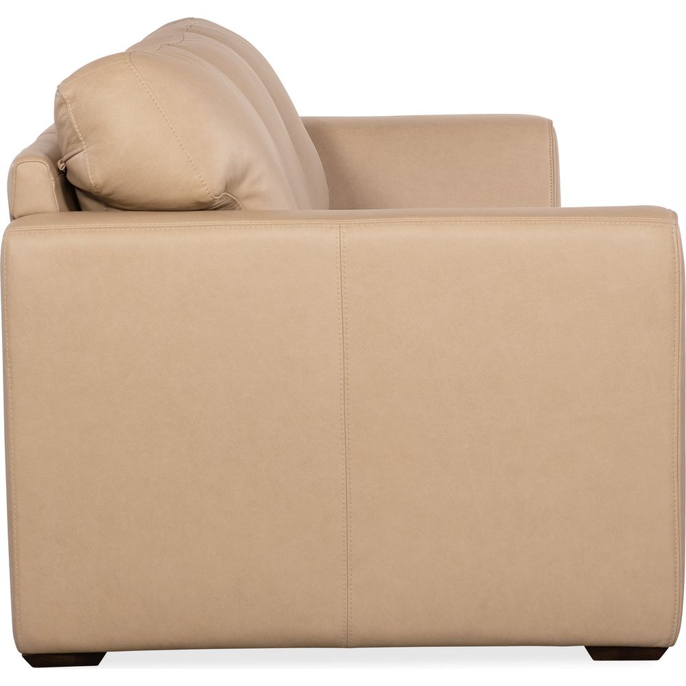 Features: Stationary sofa; Leather upholstery; Block feet; Thick arm style