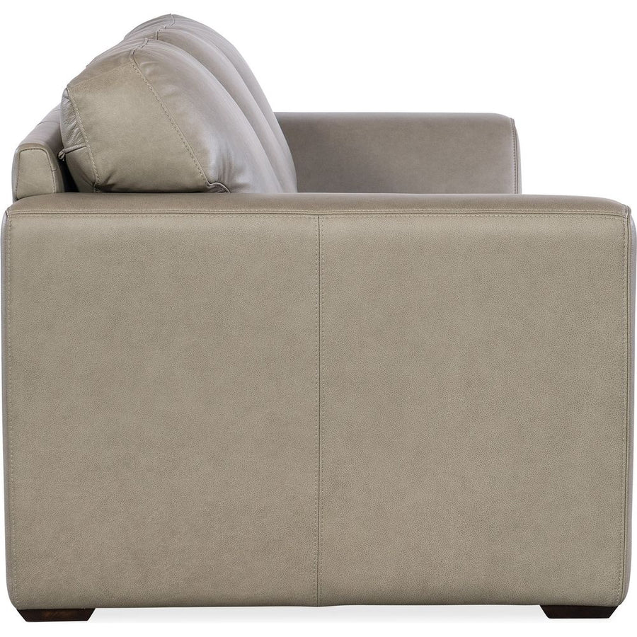 Features: Stationary sofa; Leather upholstery; Block feet; Thick arm style