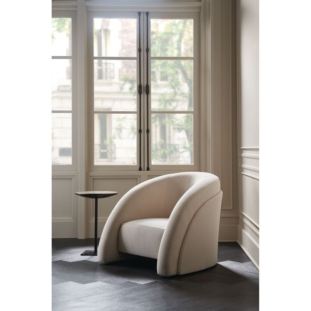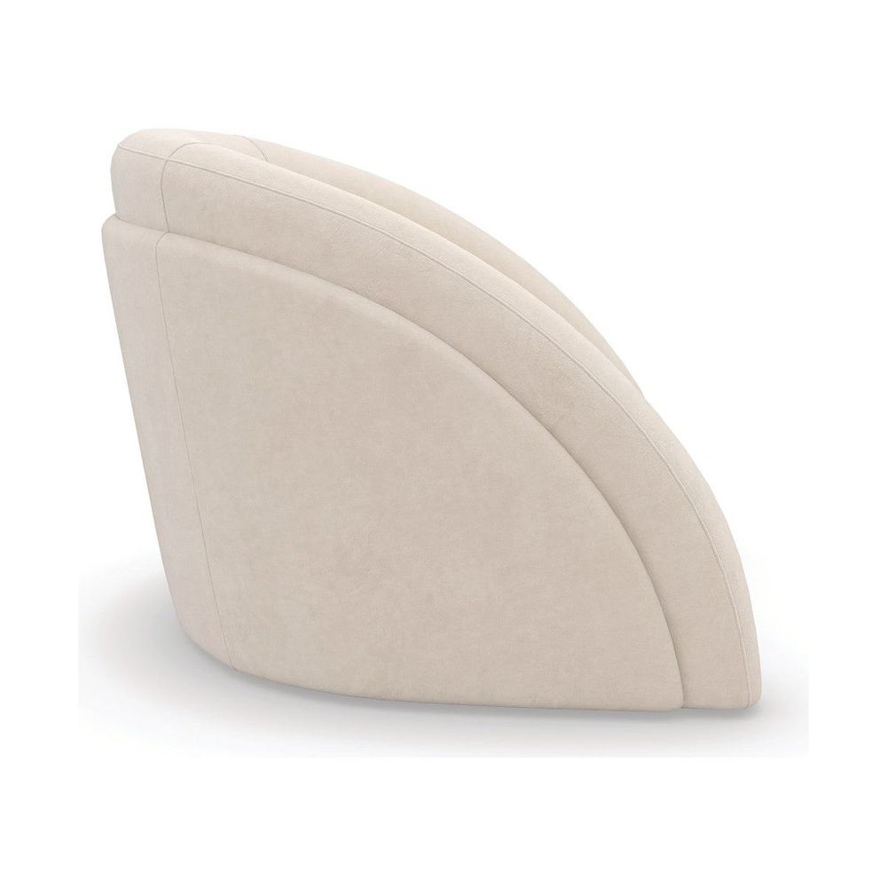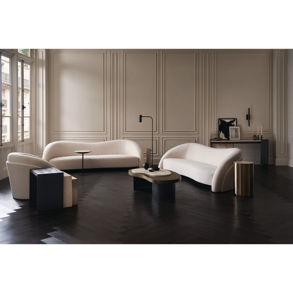 Meticulously tailored in a subtly textured alabaster fabric, the Movement chair invites a sense of calm and repose. Defined by gracefully curving lines that guide the eye along its layered back and sides, its enveloping silhouette offers sleek yet comfortable seating. Style a pair with our Movement sofa to create a chic modern space for conversation and entertaining.