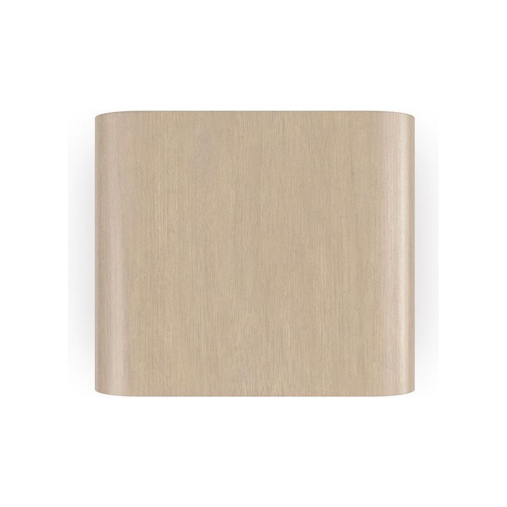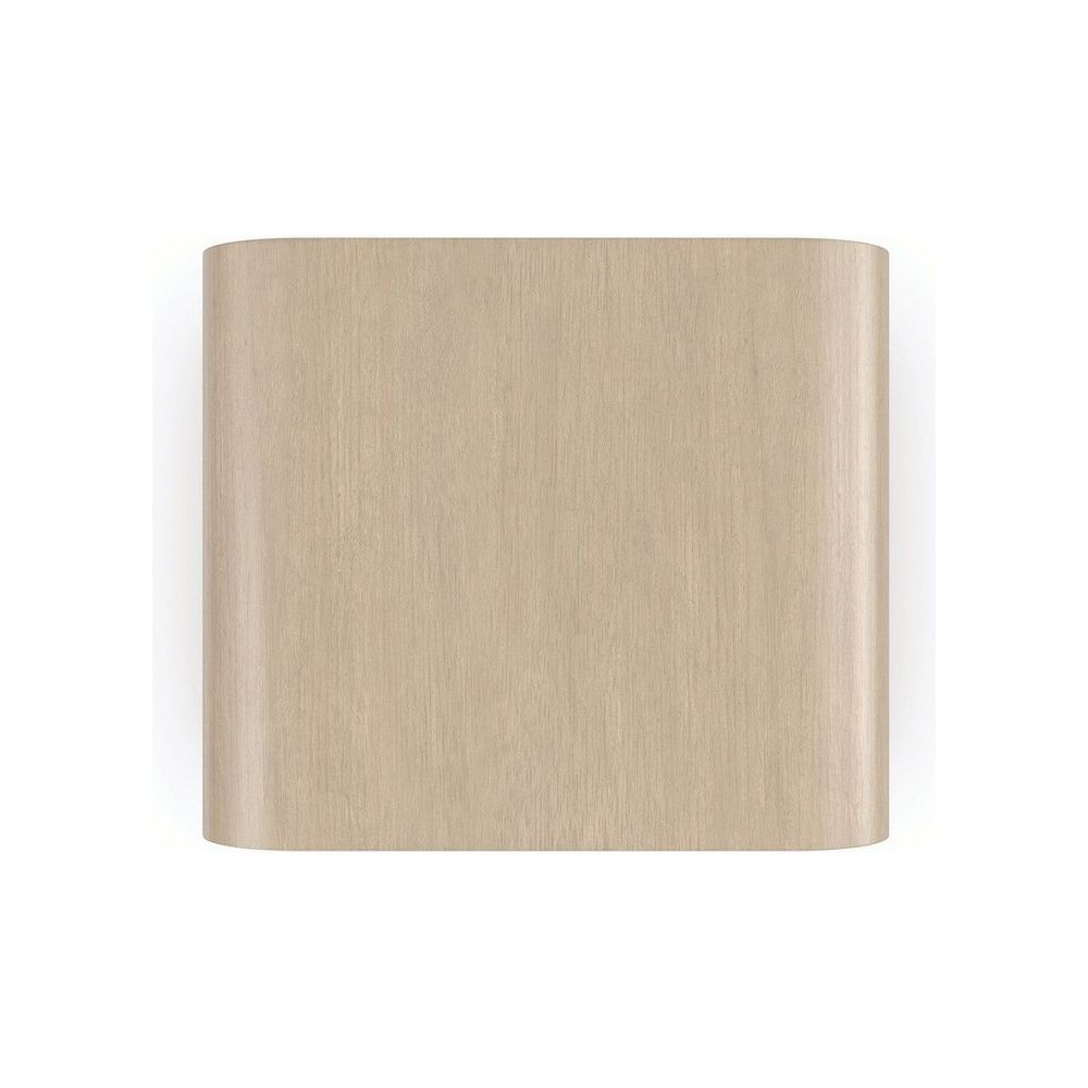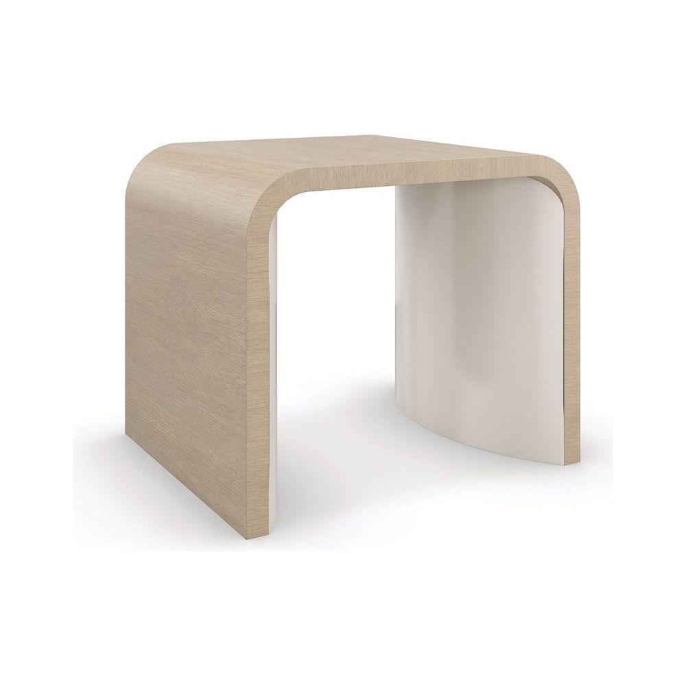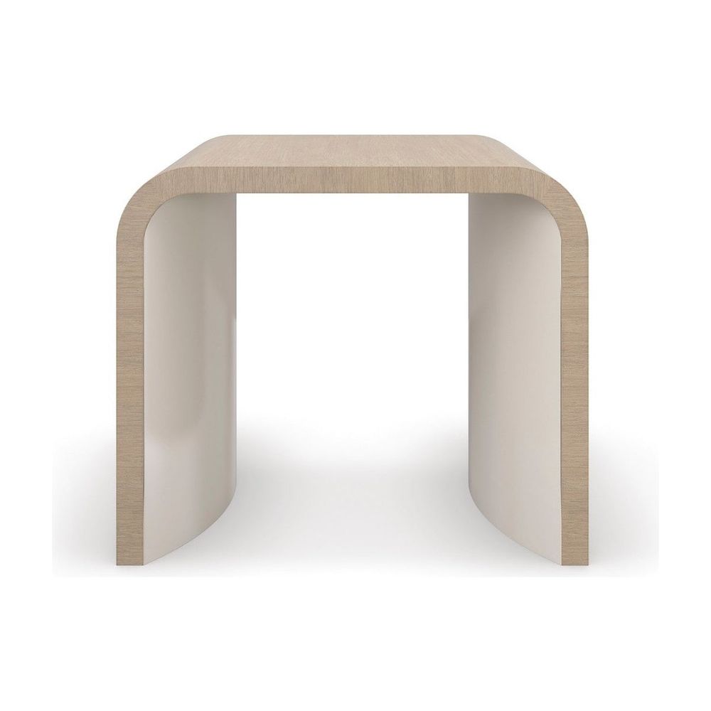 Sleek in its simplicity, this end table evokes a sense of calm and organic fluidity. Crafted in Sun Drenched Oak, its ample top gracefully waterfalls over either side. Semi-circular legs are finished in Textured Adobe for added tactile appeal and subtle contrast. Style in pairs to create movement and soften clean modern lines.